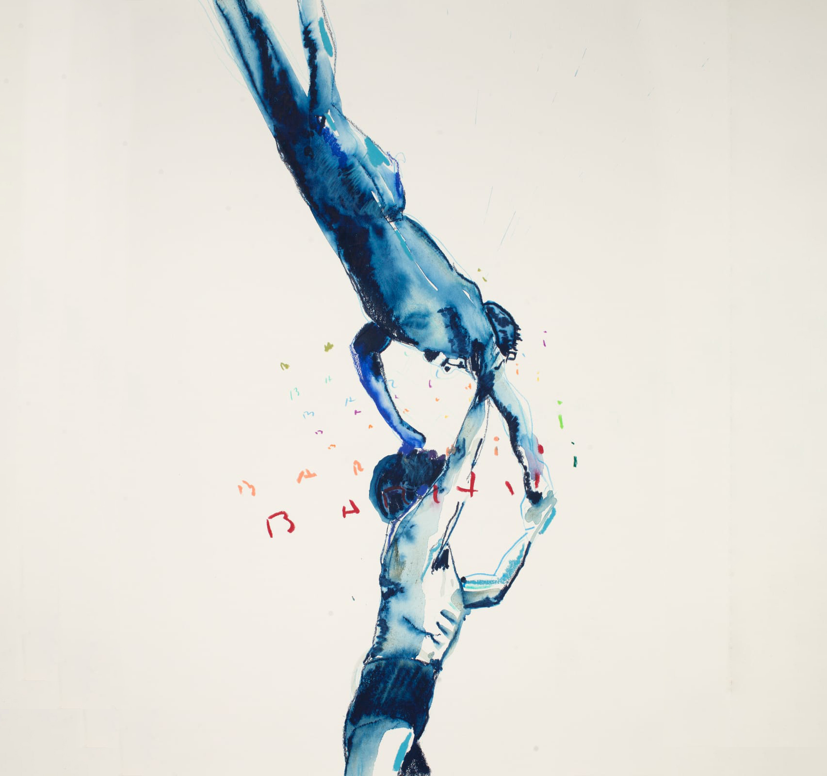 Ilustra este número: Marcelo Barchi“Caídos del cielo”, 2024.50x70cm. Tinta y acuarela sobre papel.